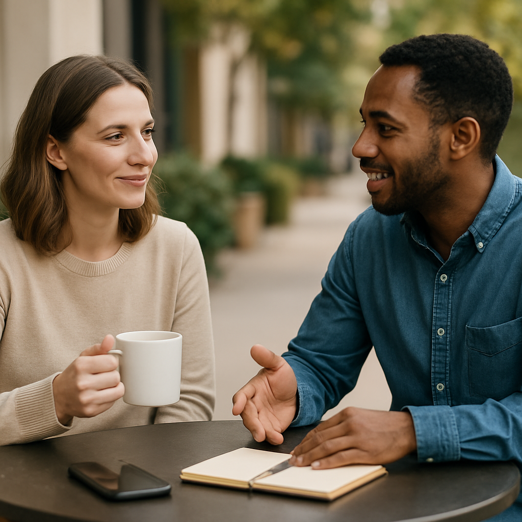 Smalltalk ist kein Versagen, im Gegenteil: Er schafft Wärme. Starte locker (Herkunft, Hobbys, Event) und nutze dann Brückensätze wie: „Das klingt spannend — wie kam es dazu?“ So bewegst du das Gespräch organisch in tiefere Ebenen.